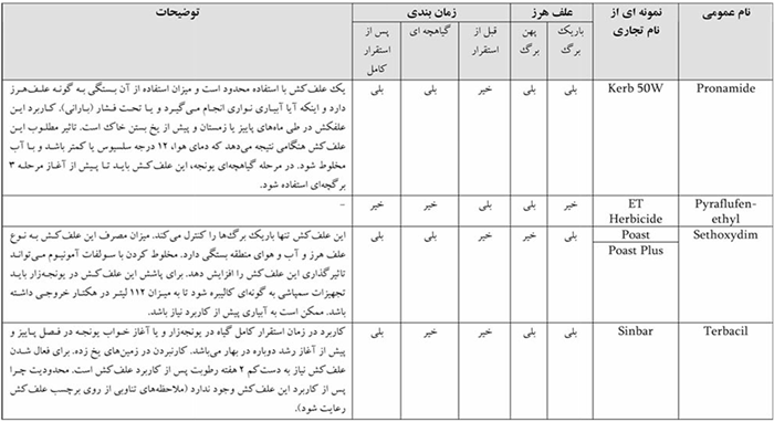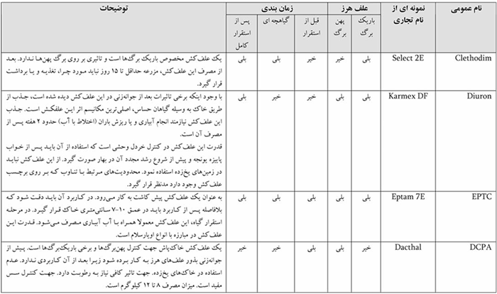 مدیریت علف های هرز برای تولید یونجه بسیار ضروری است. علف های هرز با ایجاد رقابت در استفاده از فضا، مواد غذایی، نور و آب و نیز كاستن از كیفیت یونجه برداشت شده، می توانند آسیب و زیان های فراوانی را ایجاد كنند. مدیریت علف های هرز در مزارع یونجه (Weed management in alfalfa fields) مدیریت علف های هرز برای تولید یونجه بسیار ضروری است. علف های هرز با ایجاد رقابت در استفاده از فضا، مواد غذایی، نور و آب و نیز كاستن از كیفیت یونجه برداشت شده، می توانند آسیب و زیان های فراوانی را ایجاد كنند. علف های هرز یونجه در سه زمان باعث ایجاد آسیب و زیان می شوند: پیش از استقرار كامل گیاه در مرحله گیاهچه ای پس از استقرار كامل ایجاد یك یونجه زار خوب بدون علف های هرز چند ساله بسیار مهم است. علف های هرزی مانند پیچك صحرایی، تاج ریزی برگ نقره ای، اویار سلام زرد و قیاق جزو علف های هرز بسیار خطرناك بوده كه در صورت وجود آنها در كشتزار باید پیش از كاشت یونجه با آنها مبارزه كرد. علف های هرز بیشترین تأثیر خود را در مرحله گیاهچه ای روی گیاه می گذارند. در این مرحله اگر رقابت بین گیاه زراعی و علف هرز بالا باشد می تواند باعث استقرار نیافتن مناسب گیاه زراعی شود. بررسی ها نشان داده است، یونجه هایی كه در زمین هایی با هجوم بالای علف هرز رشد كرده اند با كاهش 9% در میزان پروتئین رو به رو شده اند. ولی در زمین هایی كه با علف هرز به خوبی مبارزه شده است با افزایش 20% پروتئین یونجه روبه رو بوده اند. مبارزه با علف هرز در هنگام استقرار اولیه یونجه بسیار مهم است زیرا یونجه در ادامه قابلیت رقابتی بالایی در برابر علف های هرز دارد. علف های هرز یونجه زار انواع مختلفی از علف های هرز در یونجه زار رشد می كنند.علف های هرز را بر پایه ویژگی های مختلف به دسته های یكساله، دوساله یا چندساله، پهن برگ یا باریك برگ، بهاره یا زمستانه می توان تقسیم كرد. از لحاظ روش افزونش نیز به افزونش بذری و افزونش از طریق اندام های رویشی دسته بندی می شوند. از آنجائی كه نوع مبارزه با علف های هرز بر پایه نوع دسته بندی یاد شده متفاوت می باشد، لذا شناخت چرخه زندگی، روش افزونش، چگونگی انتشار و روش های مبارزه با علف های هرز مختلف در میزان موفقیت عملیات كنترل آن ها بسیار مؤثر خواهد بود. مهم ترین علف های هرز رایج یونجه زارها و ویژگی های هر یك از آن ها در جدول آورده شده است. جدول علف های هرز یونجه در این قسمت به بررسی گیاه انگلی سس كه یكی از مهم ترین علف های هرز در یونجه زارها یونجه است می پردازیم: سس (Cuscuta spp.) گیاه انگل گلدار سس، گسترش جهانی دارد و به طیف گسترده ای از گیاهان حمله می كند. بیش از 150 گونه سس در جهان وجود دارد. این گیاه توسط بذر افزونش شده و هیچ برگ یا (كلروفیلی) ندارد و برای رشد خود (نیاز به آب، مواد معدنی و كربوهیدرات) به گیاهان دیگر وابسته است. سس هوای گرم و آفتابی را می پسندد. در این شرایط سرعت رشد رشته های آن گاهی تا 8 سانتی متر در روز بالغ می شود. سس دارای ساقه نخی شكل زرد رنگ است و ساقه خود را روی ساقه گیاه میزبان چسبانده و توسط اندام های مكنده وچسبنده از گیاه میزبان تغذیه می كند. گل های آن ریز، سفید رنگ یا صورتی و به صورت خوشه ای است. بذر سس دو حجره ای، ریز و دارای پوسته های به تقریب نفوذ ناپذیر به اكسیژن است و از این رو می تواند تا 20 سال به حالت خواب در خاك باقی بماند. سس یونجه علاوه بركاهش كمی محصول، در صورت اختلاط با علوفه باعث كاهش ارزش اقتصادی آن ها نیز می شود. در یونجه زارهای تولید بذر نیز اختلاط بذر یونجه با سس باعث افت قیمت و كاهش بازارپسندی بذر یونجه آلوده به سس می شود. یك بوته سس با پیشروی خود می تواند لك های به قطر 3 متر در یك یونجه زار به وجود آورد. در آلودگی شدید 100 - 80 درصد یونجه زار را می پوشاند كه در این هنگام با جذب مواد غذایی و جلوگیری از رسیدن نور به یونجه به شدت رشد و نمو گیاهان میزبان را مختل می سازد و آن را نابود می كند. در بهار دانه های سس در نزدیكی سطح خاك جوانه زده و با ساقه ای نازك آغاز به ب